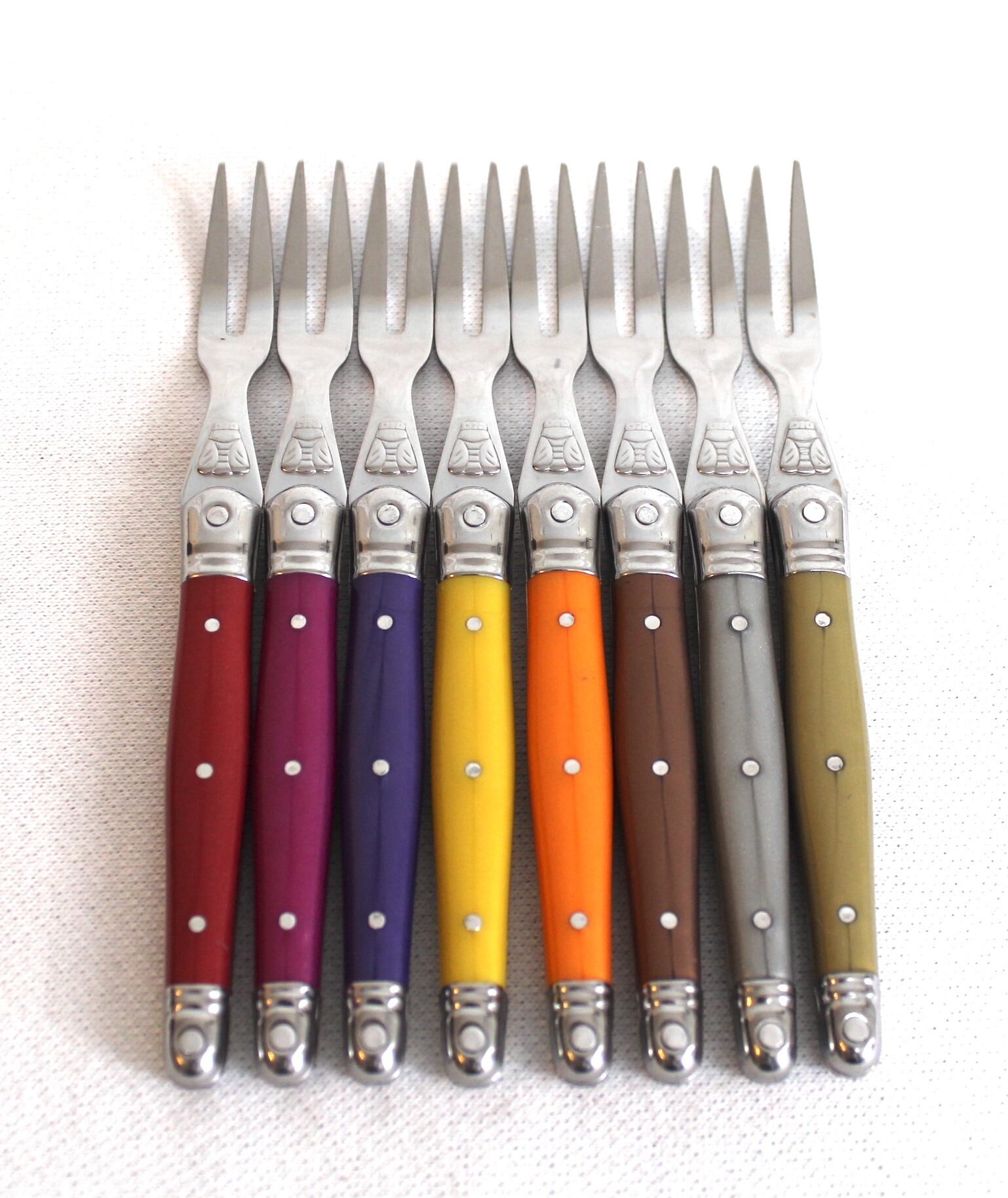 フランス ティエールの地で昔から作られているライヨール カトラリーのクラシックでシンプルなデザインを活かしながらハンドルに様々なカラーを使用したり、ステンレスを使うことで日常でカジュアルに使いやすいカトラリーに仕上がっています。